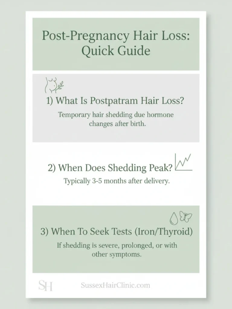 Often called “Postpartum Alopecia” or Telogen Gravidarum, this is a reactive shedding condition. During pregnancy, high estrogen levels keep your hair in the “growth phase” for longer than usual, giving you that thick, lustrous “pregnancy hair.”